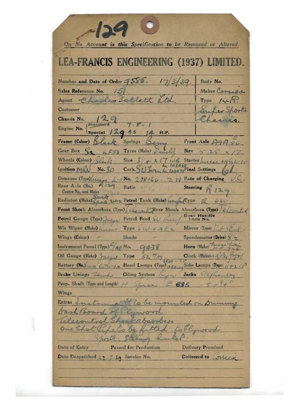 The original Lea Francis Ltd. coachbuilder's build tag, VIN plate, registered number plate, and the car's complete ownership history accompany the car.