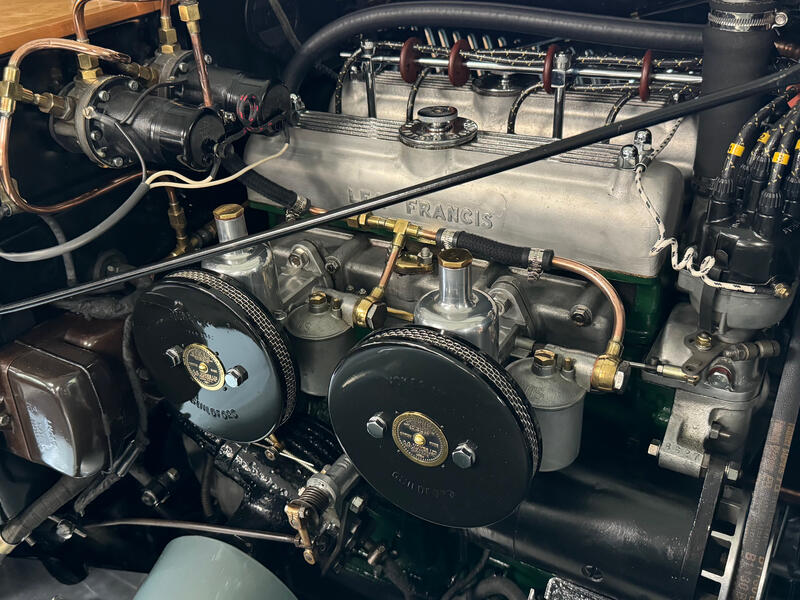 A 91 MPH Average Speed was achieved by a similar Super Sports model while winning the Second Brooklands August Long Handicap, driven by Charles Follett, August 1938. The restoration of FXN 602 was started in 1982 by Lea Francis enthusiast Frank Delaney of Harrington, UK and finally completed 31 years later in 2013 as a driver quality restoration. Upon importing the car from England in June, 2021, I completely refreshed the restoration and brought it up to concours standards. It was driven on a USA road for the first time at the Audrain Concours Tour d'Elegance around Aquidneck Island, RI for over sixty miles and performed flawlessly.