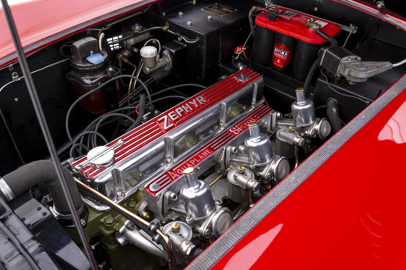 Powered by British Ford’s robust 2.6 litre Zephyr OHV straight six engine with triple SU H2 carburetors, built to Allard’s own high performance racing specifications, later adopted and further developed in the renowned AC Ace Ruddspeed roadsters.