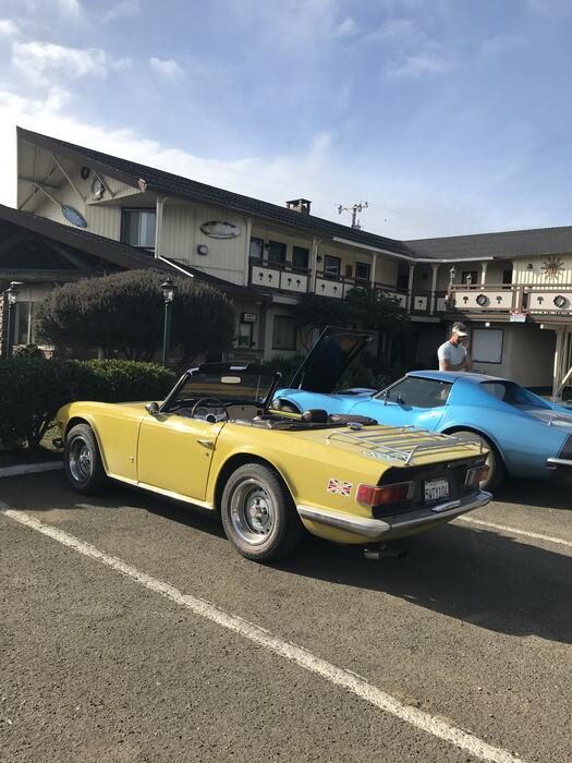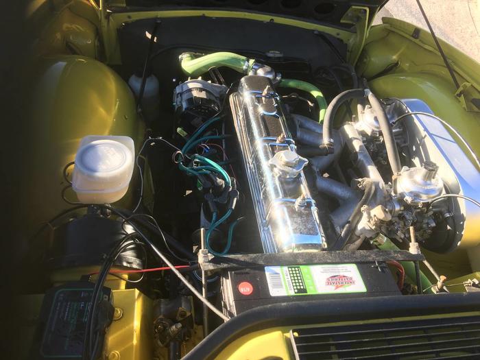 This car is a clone of my original 1973 TR6 I bought new in 1973. Mimosa and Chestnt. No overdrive. Stock engine spec except for a Pertronix ignition. Rear shock conversion.